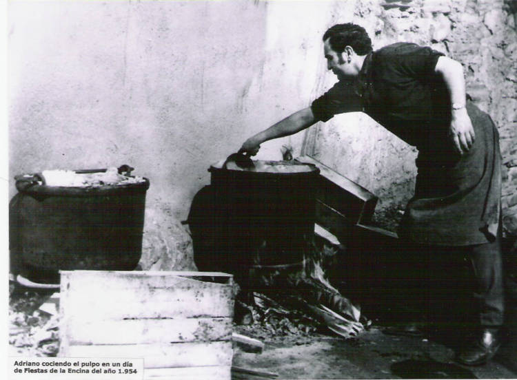 En la foto podemos ver al padre de Adriano Cubelos padre cociendo el pulpo en las Fiestas de la Encina, fiestas patronales de la ciudad de Ponferrada, en el año 1954 en las mismas ollas que se van a emplear en el Record Guinness el próximo 13 de abril y que se encuentran en perfecto estado.
