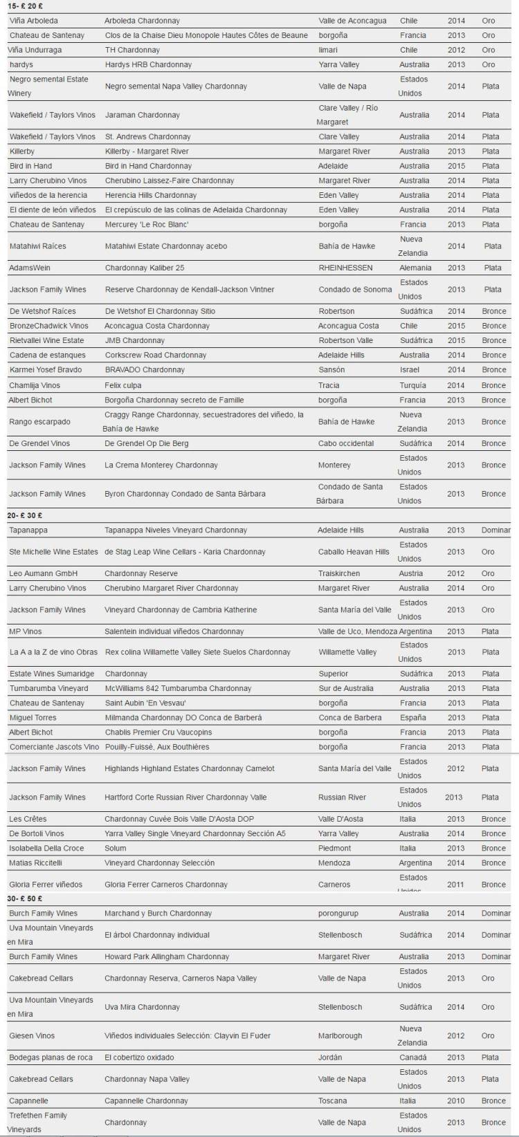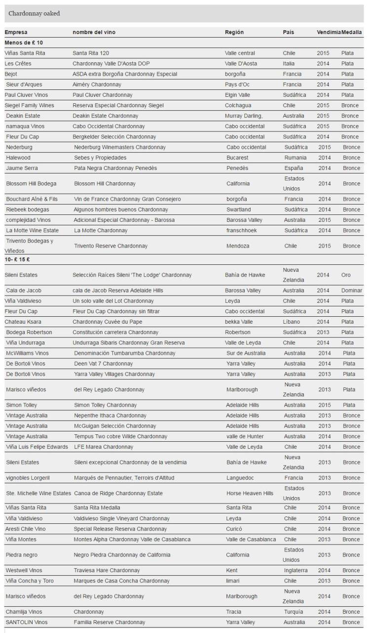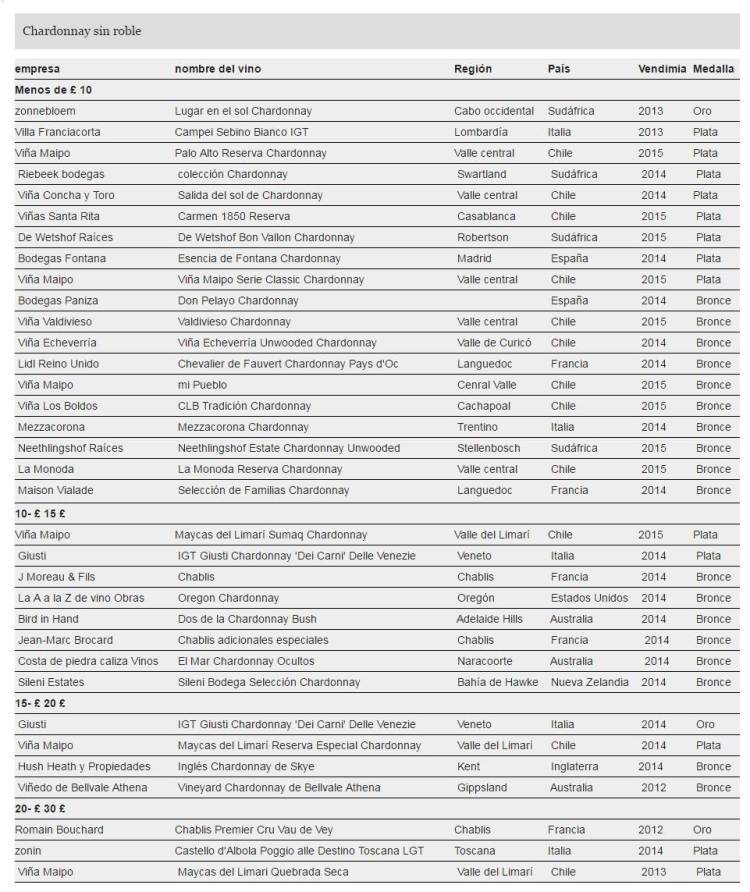 Resultados del Chardonnay Masters 2016, destacando principalmente en esta edición los vinos procedentes de Australia, aunque ha habido premios para muchos de otras zonas de procedencia.