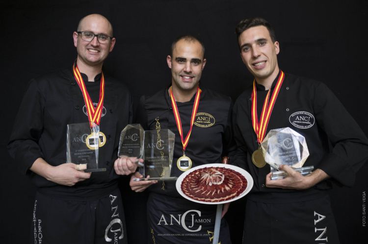 El primer premio, como mejor cortador de jamón de España, fue para Pablo Montiel de Ginés de Sevilla. Además de su trofeo, se le hizo entrega de la “Chaqueta de Maestro cortador”.