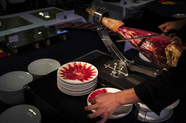 Necesitaron algo más de dos horas para cortar a cuchillo jamones ibéricos de un peso aproximado de 7,5 kilos.