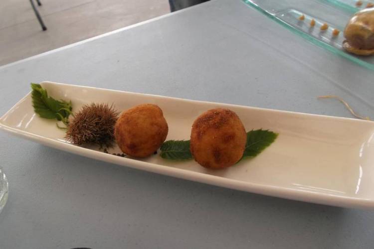 Segunda plaza: Restaurante La Tronera, Villadepalos. Croqueta caramelizada con sorpresa de castaña. ¡¡Excelente!! ¡¡Enhorabuena!!