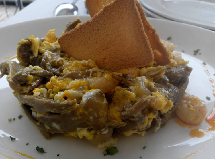 - Sustituir uno de los ingredientes (setas o gambas) por otro: por ejemplo las gambas por taquitos de jamón o las setas por espárragos trigueros.