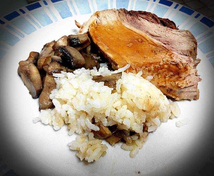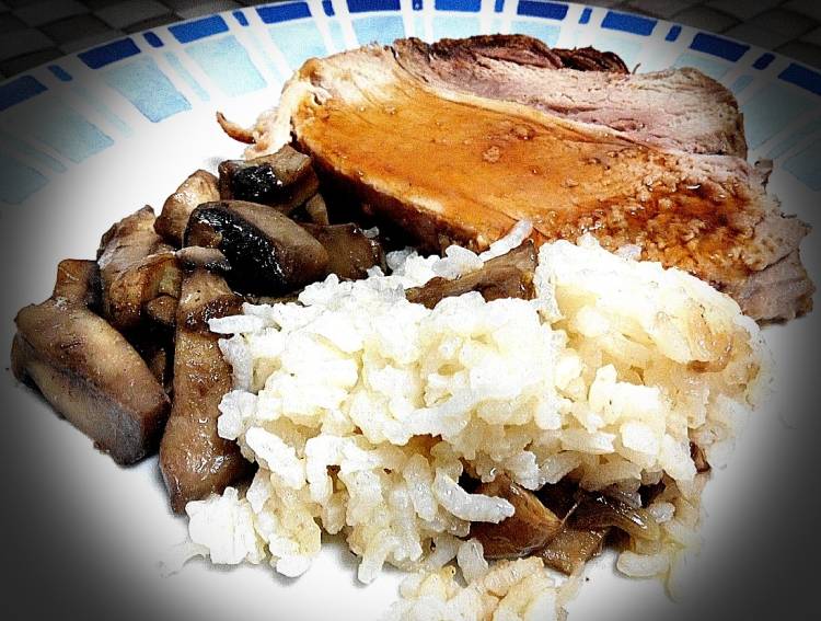 Rollo de ternera al horno con arroz y champiñones