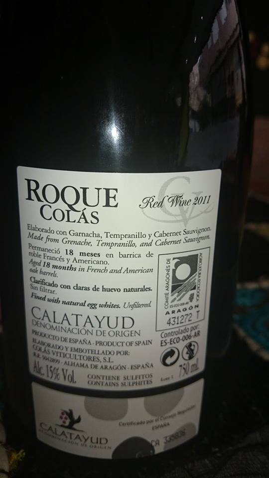 Hoy vamos a hablaros de este Roque Colás 2011, un vino elaborado en la D.O. Calatayud, con lo cual no creemos que resulte difícil indicarnos. Se trata de un vino elaborado en esta DO aragonesa en cuya elaboración han entrado a tomar parte diferentes varietales como son la Garnacha, Tempranillo y la Cabernet Sauvignon, lo cual ya le da de por sí una interesante complejidad. Lo elabora Colás y Viticultores.
