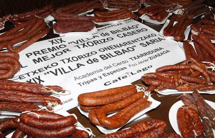 Ruta de los txorizos en Bilbao que ya lleva unos días en marcha y que dura hasta el día 28 de este mes y en la cual participan 61 establecimientos hosteleros de los 'barrios históricos de Bilbao', Casco Viejo, Atxuri, La Ribera y Bilbao La Vieja, y que se realiza paralelamente al Carnaval.