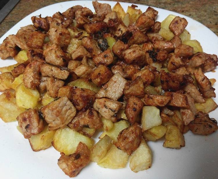 Hoy es sábado, y aunque ya estamos en operación de depurar excesos, un pequeño homenaje nos lo merecemos seguro. Y hemos escogido para ello esta receta de Salteado de lomo macerado con patatas fritas. Muy similar a la receta con la que hacemos nosotros 'raxo con patatas' y que es una auténtica delicia para los amantes de la carne.