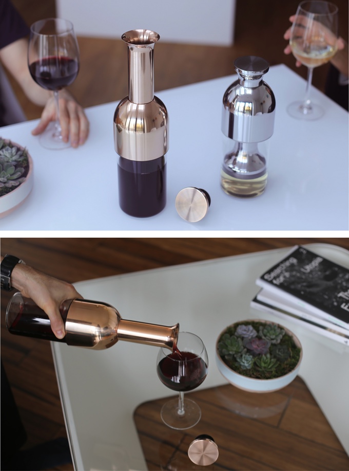 Una botella/decantador permitiría tener un vino durante 12 días en su interior sin que perdiese ninguna propiedad. Se trata de un planteamiento para buscar una solución a los hábitos de consumo de vino en las familias británicas realizado por Laithwaite que indica que una botella de vino les llega para el consumo en casa una semana, con lo cual se pierden muchas de sus propiedades.