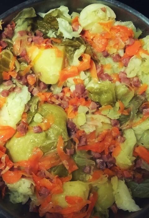 Viene a ser una especie de estofado en nuestra cocina, con lo cual es habitual que nosotros le podamos añadir guisantes, zanahorias o incluso un pimiento rojo y/o verde. hemos escogido setas, pero bien podíamos haber escogido patatas.