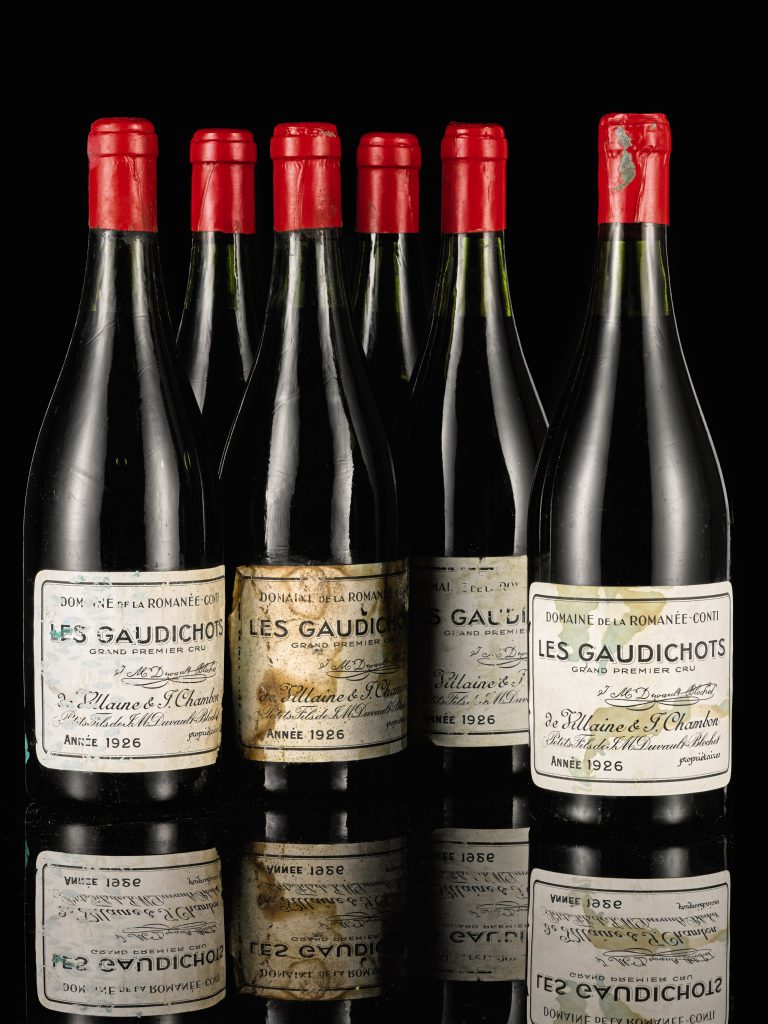 Estas seis botellas de 'Les Gaudichots' 1926 fueron vendidos a un comprador de los Estados Unidos de 49.350 £ (casi 63.000 euros). Es muy raro ver RDC premier cru en venta. Además cuenta con la rareza de que esa etiqueta dejó de existir a medidos de la década de los 30 del siglo pasado al cambiar la propiedad de la bodega.