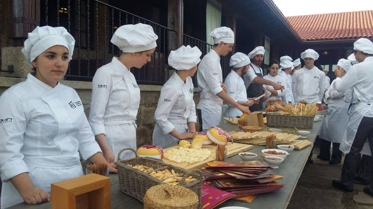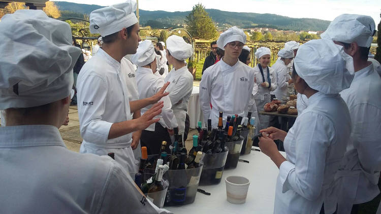Showcooking del Grupo Nove maridado con vinos de Rías Baixas para la visita de los alumnos del Basque Culinary Center