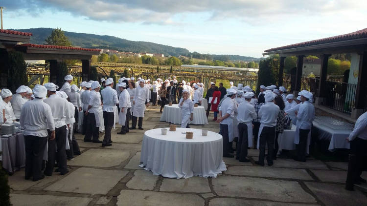 Showcooking del Grupo Nove maridado con vinos de Rías Baixas para la visita de los alumnos del Basque Culinary Center. Un maridaje ideal de la mano de los chefs estrella Michelin gallegos y vinos de esta Denominación de origen gallega.