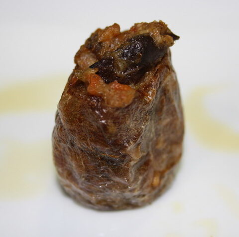 ¿Qué ocurre si no tenemos esa opción? En ese caso ponemos el solomillo en una fuente de horno con la parte de las hendiduras para arriba y le echaremos unas gotas de vino blanco por estas. Lo metemos al horno a unos 220º y al cabo de 6-8 minutos veremos que el vino ha desaparecido y que la carne comienza a soltar los jugos que quedan en la fuente.