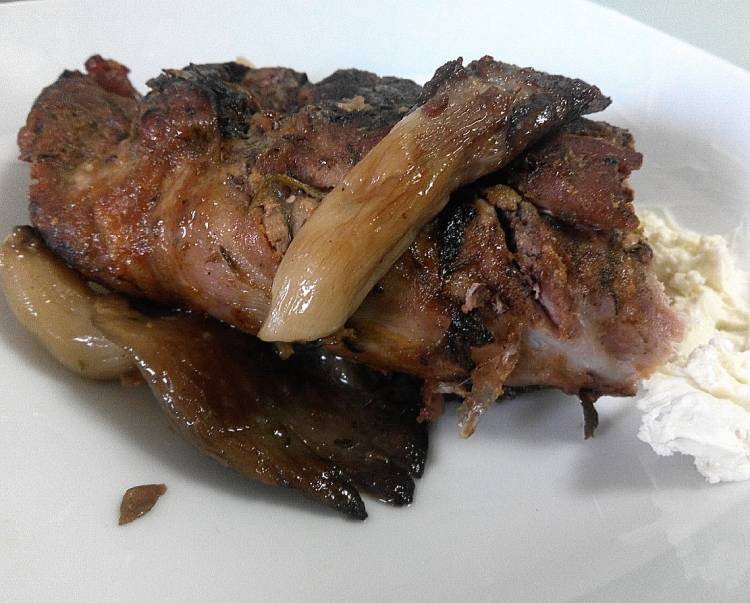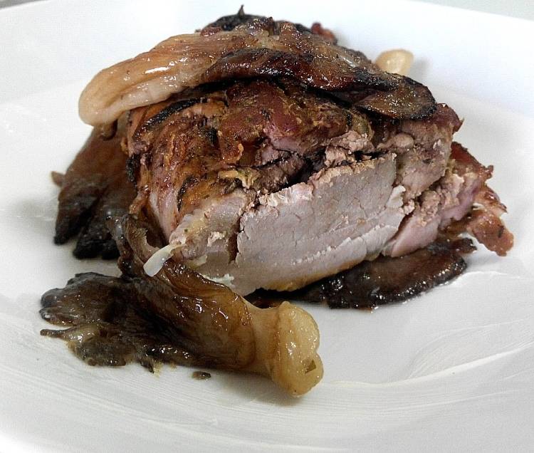 Solomillo de cerdo rostizado con lecho de setas al ajillo 3