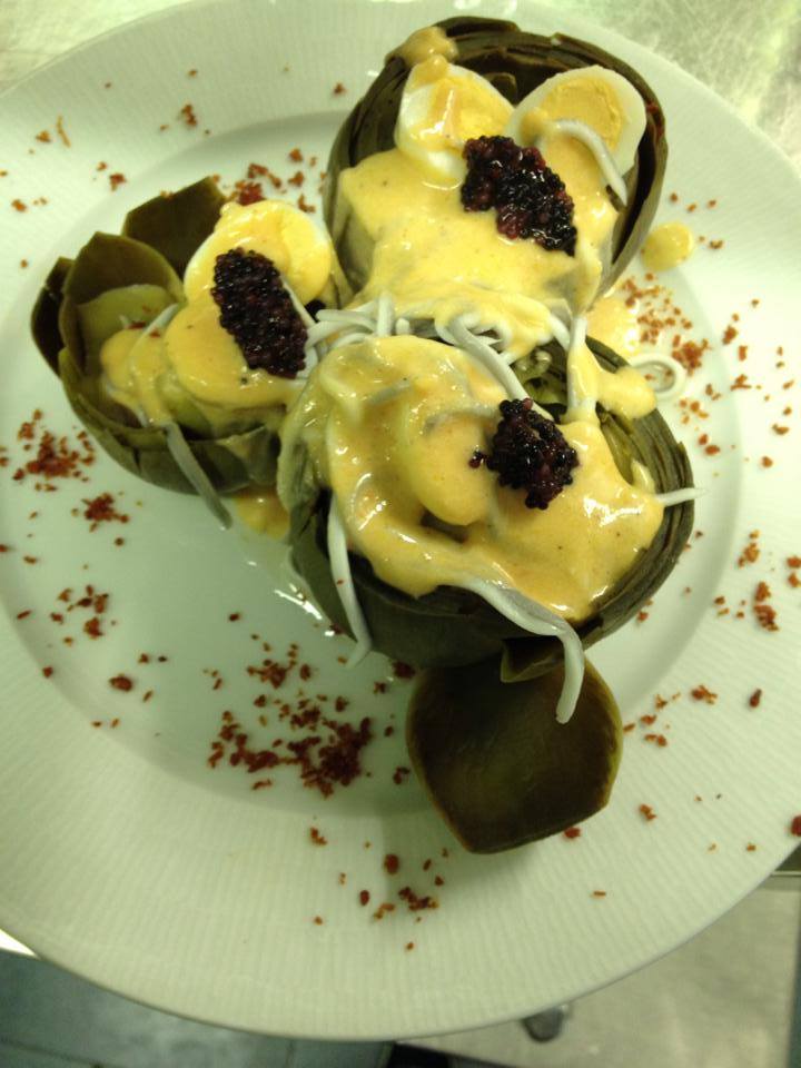 Continuamos con nuestra sección de Tapas de la semana (2) y empezamos con una maravilla que nos proponen los amigos del Restaurante La Parrilla Del Sirenas de Segovia, como son estas Alcachofas con gulas y huevos de codorniz,una auténtica delicia para comenzar la semana de lunes como Dios manda.