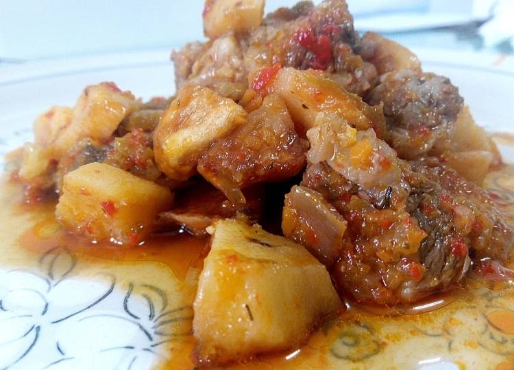 Mientras hacemos unas patatas fritas en cuadraditos que añadiremos a falta de cinco minutos. de quitar la olla del fuego.