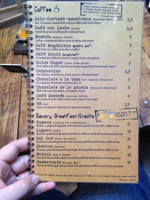 Por la parte de lo dulce nos encontramos desde minitartas de Santiago o de San Marcos, hasta la clásica tarta Sacher, como helados artesanales,..., mientras que por la parte de lo salado no pueden faltar los huevos rotos con chorizo y con jamón o las hamburguesas pero con jamón ibérico, queso manchego y nada de kétchup: tumaca.