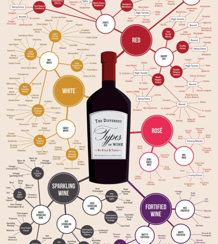 Sin duda esta infografía nos parece esencial para cualquier amante del vino o para cualquiera que se quiera iniciar en este complejo mundo y saber tener una idea previa del vino al que se va a enfrentar cuando tenga la copa delante.