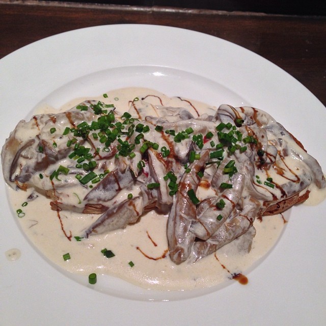 Pondremos la tosta de pan en el plato y colocaremos encima nuestras setas y boletus y las 'bañaremos' con la crema de queso Valdeón que habremos calentado previamente.