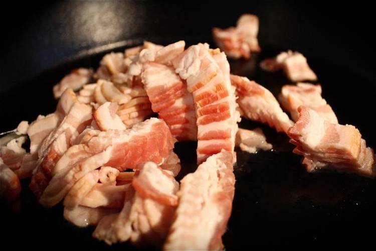 Limpiamos las truchas de espinas y les retiramos la piel con cuidado. La cortaremos en trocitos y la pondremos sobre el jamón.