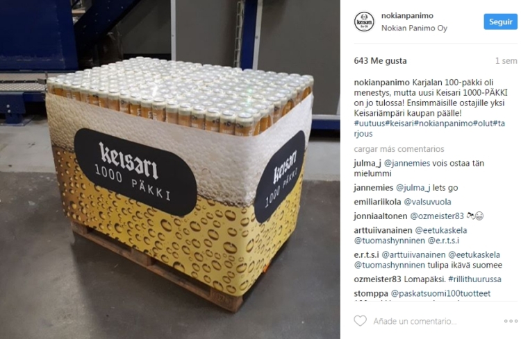 Una cervecera finlandesa saca al mercado un pack de 1080 botes. Lo curioso es que está teniendo compras. Esta ha sido la campaña que la cervecera Nokian Panimo ha puesto en el mercado de su marca Keisari para rivalizar con un competidor que recientemente ha sacado un pack de 100 cervezas.
