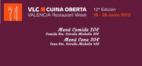 Desde ayer y hasta el próximo día 28 de este mes se va a celebrar Valencia Cuina Oberta Junio 2015: 12ª Valencia Restaurant Week, jornadas gastronómicas en las que van a participar cerca de 50 restaurantes de la ciudad de Valencia ofreciendo menús a precio cerrado.