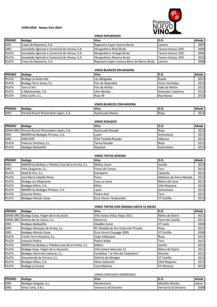 Ya conocemos a los vinos premiados en el concurso Nuevo Vino 2014.