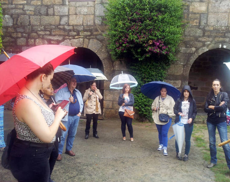 Un total de 12 alumnos del Curso de Promoción Turística Local e Información al Visitante han participado hoy en una jornada en la Ruta do Viño Rías Baixas. La técnico de esta asociación sin ánimo de lucro, Laura Expósito, ha recibido esta mañana al grupo en las instalaciones de Bodegas del Palacio de Fefiñanes.
