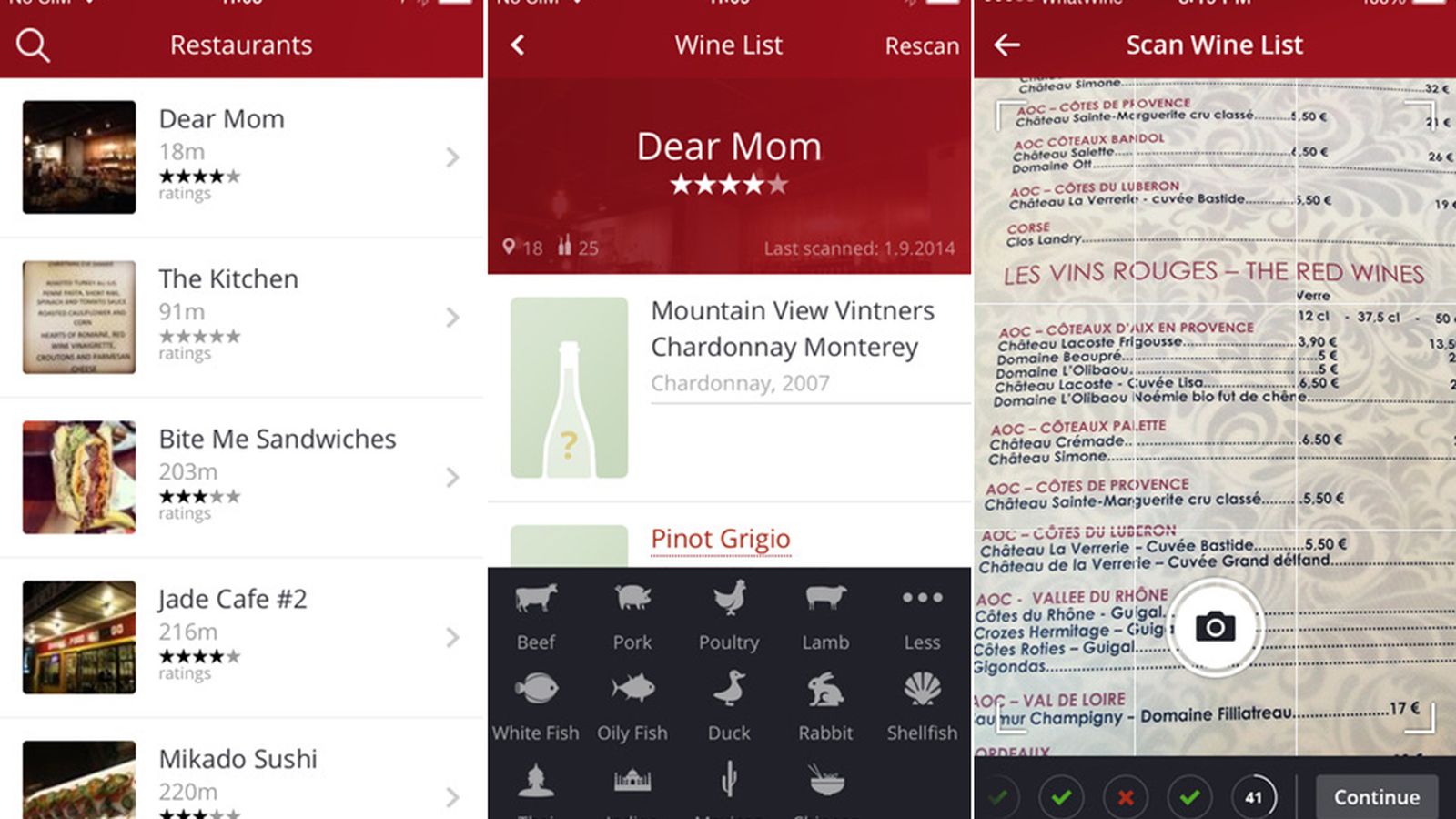 WhatWine no solo tiene en cuenta el maridaje con alimentos ya que tiene también calificaciones de los críticos. Incluso recomendaciones ordenadas por precios. En el caso de que el restaurante no ofrezca el maridaje ideal, el potente algoritmo de esta app encuentra el mejor vino disponible dentro del rango de precio indicado del usuario. WhatWine puede recomendar el mejor vino para una mesa en la que cada huésped se ha elegido un plato diferente.