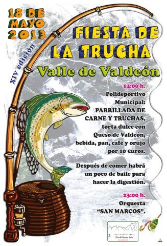 Hoy hacemos referencia a la Fiesta de la trucha del Valle de Valdeón que se va a celebrar el próximo 18 de este mes de mayo de la cual ya se alcanza la décimocuarta edición. Solo os digo que el Valle de Valdeón está integrado en la Comarca Montaña Oriental en la provincia de León que limita al norte con Asturias y al este con Cantabria y está armónicamente situado entre los macizos Occidental y Central de Picos de Europa, con lo que os podéis imaginar como son las truchas por esa zona.