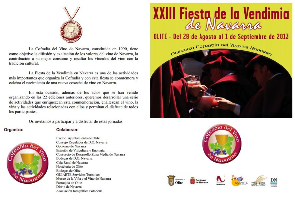 La Fiesta de la Vendimia en Navarra es una de las actividades más importantes que organiza la Cofradía y con esta fiesta se conmemora y celebra el nacimiento de una nueva cosecha de vino en Navarra.