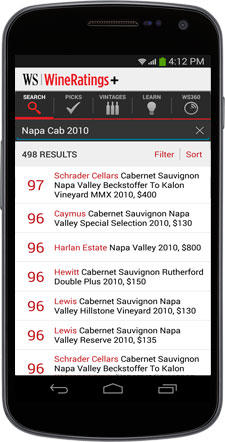 Ya disponible la app de Wine Spectator para Android, WineRatings+