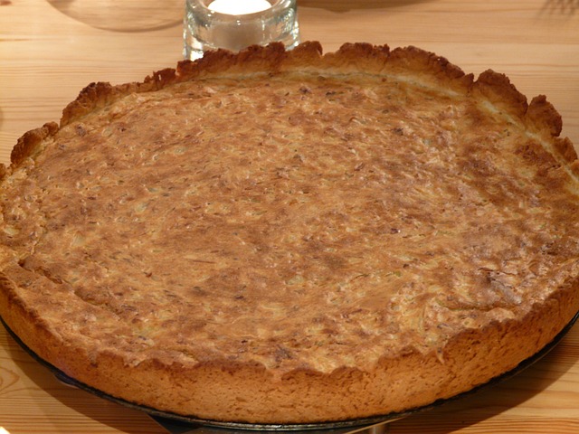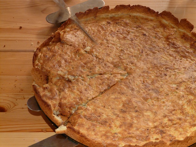 Hoy os dejamos un plato diferente, ya que rara vez es un entrante ni un primero, pero tampoco es un segundo ni un postre para después del café. El Zwiebelkuchen es una tarta diferente ya que es una especie de tarta salada que incluye como principal ingrediente las cebollas picadas y pequeñas tiras de speck, o sea tocino, panceta o bacon, aromatizado con comino persa (en su receta original), todo ello preparado al horno en forma de pastel.